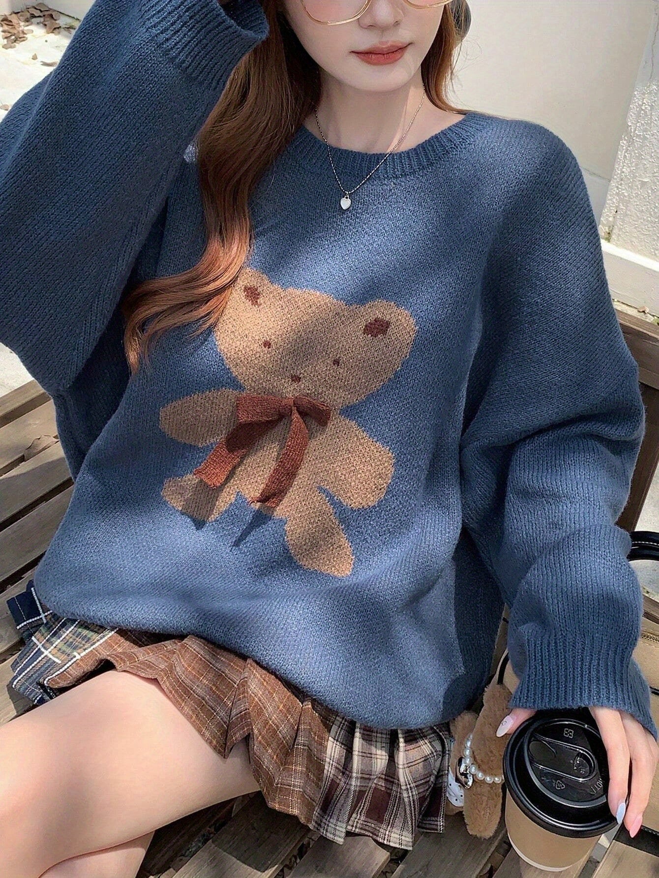 Pull-over élégant à motif Ours avec nœud